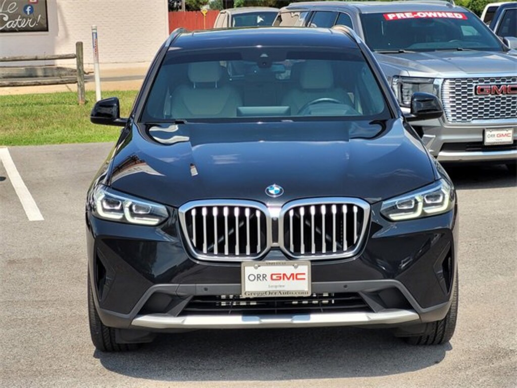 This 2022 BMW X3 comes equipped with Connected Package Pro, Premium Package (Gesture Control, Head-Up Display, Heated Front Seats, Heated Steering Wheel, Lumbar Support, and Panoramic Moonroof), 8-Speed Automatic Sport, Navigation, Navigation System, 12 Speakers, 3.385 Axle Ratio, 4-Wheel Disc Brakes, ABS brakes, Air Conditioning, Alloy wheels, AM/FM Radio, AM/FM radio: SiriusXM with 360L, Apple CarPlay & Android Auto Compatibility, Auto High-beam Headlights, Auto-dimming door mirrors, Auto-dimming Rear-View mirror, Automatic temperature control, BMW Assist eCall, BMW TeleServices, Brake assist, Bumpers: body-color, Comfort Access Keyless Entry, ConnectedDrive Services, Delay-off headlights, Driver door bin, Driver vanity mirror, Dual front impact airbags, Dual front side impact airbags, Electronic Stability Control, Emergency communication system: BMW Assist eCall, Enhanced Bluetooth, Exterior Parking Camera Rear, Four wheel independent suspension, Front anti-roll bar, Front Bucket Seats, Front Center Armrest, Front dual zone A/C, Front reading lights, Fully automatic headlights, Garage door transmitter, Genuine wood dashboard insert, Genuine wood door panel insert, Heated door mirrors, Hi-Fi Sound System, Illuminated entry, Knee airbag, Live Cockpit Pro w/Navigation, Low tire pressure warning, Memory seat, Occupant sensing airbag, Outside temperature display, Overhead airbag, Panic alarm, Passenger door bin, Passenger vanity mirror, Perforated SensaTec Upholstery, Power door mirrors, Power driver seat, Power Front Seats, Power Liftgate, Power passenger seat, Power steering, Power windows, Radio data system, Rain sensing wipers, Rear air conditioning, Rear anti-roll bar, Rear reading lights, Rear seat center armrest, Rear window defroster, Rear window wiper, Remote Engine Start, Remote keyless entry, Roof rack: rails only, Security system, SiriusXM w/360L, Speed control, Speed-sensing steering, Speed-Sensitive Wipers, Split folding rear seat, Spoiler, Sport Seats, Sport steering wheel, Steering wheel mounted audio controls, Tachometer, Telescoping steering wheel, Tilt steering wheel, Traction control, Trip computer, Turn signal indicator mirrors, Variably intermittent wipers, Wheels: 19 x 7.5 Y-Spoke (Style 693), and WiFi Hotspot. 23/29 City/Highway MPG 8-Speed Automatic Sport, Connected Package Pro, Gesture Control, Head-Up Display, Heated Front Seats, Heated Steering Wheel, Lumbar Support, Navigation, Navigation System, Panoramic Moonroof, Premium Package.