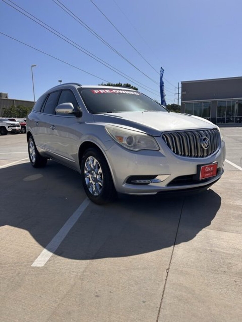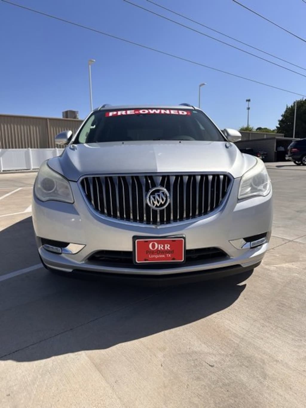 This 2015 Buick Enclave comes equipped with 4500lbs Trailering Package (Heavy-Duty Cooling System and Trailer Hitch), Preferred Equipment Group 1SN (8-Way Power Driver Seat Adjuster, 8-Way Power Passenger Seat Adjuster, Bose Sound System, Forward Collision Alert & Lane Departure Warning, Heated Steering Wheel, Memory Settings, NavTraffic, and Side Blind Zone Alert w/Cross Traffic Alert), Premium Package (Articulating Headlights, Heated & Cooled Driver & Front Passenger Seats, Power Tilt & Telescopic Steering Column, and Power-Folding Heated Body-Color Outside Mirrors), FWD, 10 Speakers, 19 9-Spoke Chrome-Clad Aluminum Wheels, 3.16 Axle Ratio, 3rd row seats: split-bench, 4-Wheel Disc Brakes, 7-Passenger Seating, ABS brakes, Air Conditioning, Alloy wheels, AM/FM radio: SiriusXM, Auto tilt-away steering wheel, Auto-dimming door mirrors, Auto-dimming Rear-View mirror, Automatic temperature control, Bose Performance-Enhanced 10-Speaker System, Brake assist, Bumpers: body-color, CD player, Compass, Delay-off headlights, Driver door bin, Driver vanity mirror, Dual front impact airbags, Dual front side impact airbags, Electronic Stability Control, Emergency communication system: OnStar Directions & Connections, Exterior Parking Camera Rear, Four wheel independent suspension, Front anti-roll bar, Front Bucket Seats, Front Center Armrest w/Storage, Front dual zone A/C, Front License Plate Mounting Bracket, Front reading lights, Fully automatic headlights, Garage door transmitter, Heated door mirrors, Heated front seats, Heated steering wheel, High intensity discharge headlights: Bi-Xenon, Illuminated entry, Leather steering wheel, Low tire pressure warning, Memory seat, Navigation System, Occupant sensing airbag, Outside temperature display, Overhead airbag, Panic alarm, Passenger door bin, Passenger vanity mirror, Perforated Leather-Appointed Seat Trim, Power door mirrors, Power driver seat, Power Liftgate, Power passenger seat, Power steering, Power windows, Radio data system, Radio: Color Touch AM/FM/CD/Nav w/IntelliLink, Rear air conditioning, Rear anti-roll bar, Rear audio controls, Rear Audio System Controls, Rear Parking Sensors, Rear reading lights, Rear window defroster, Rear window wiper, Remote keyless entry, Roof rack: rails only, Security system, SiriusXM Satellite Radio, Speed control, Speed-sensing steering, Spoiler, Steering wheel memory, Steering wheel mounted audio controls, Tachometer, Telescoping steering wheel, Tilt steering wheel, Traction control, Trip computer, Turn signal indicator mirrors, Variably intermittent wipers, Ventilated front seats, and Voltmeter. Carfax no accidents, FWD, 4500lbs Trailering Package, 8-Way Power Driver Seat Adjuster, 8-Way Power Passenger Seat Adjuster, Bose Sound System, Forward Collision Alert & Lane Departure Warning, Heated Steering Wheel, Heavy-Duty Cooling System, Memory Settings, NavTraffic, Preferred Equipment Group 1SN, Premium Package, Side Blind Zone Alert w/Cross Traffic Alert, Trailer Hitch.
