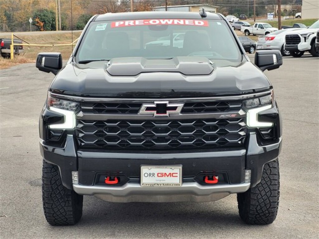 This 2025 Chevrolet Silverado 1500 comes equipped with Preferred Equipment Group 3LT (10-Way Power Driver Seat w/Lumbar, 10-Way Power Passenger Seat Adjuster w/Lumbar, 12.3 Multicolor Reconfigurable Digital Display, 120-Volt Interior Power Outlet, 2 USB Data Ports, 2nd Row Heated Outboard Seats, All-Weather Floor Liner (LPO), Auto-Dimming Inside Rear-View Mirror, Bed View Camera, Bluetooth® For Phone, Chevytec Spray-On Black Bedliner, Color-Keyed Carpeting Floor Covering, Deep-Tinted Glass, Driver Memory, Dual Rear USB Ports (Charge Only), Electric Rear-Window Defogger, Electronic Cruise Control, EZ Lift Power Lock & Release Tailgate, Floor Mounted Center Console, Front LED Fog Lamps, Front Rain-Sensing Wipers, HD Surround Vision, Heated Driver & Front Outboard Passenger Seats, Heated Steering Wheel, Heavy-Duty Air Filter, High Gloss Black Mirror Caps, Hill Descent Control, Hitch Guidance w/Hitch View, In-Vehicle Trailering System App, Integrated Trailer Brake Controller, Keyless Open & Start, LED Cargo Area Lighting, Manual Tilt/Telescoping Steering Column, OnStar Services Capable, Outside Heated Power-Adjustable Mirrors, Performance Red Recovery Hooks, Perimeter Lighting, Power Front Passenger Windows w/Express Up/Down, Power Front Windows w/Driver Express Up/Down, Power Rear Windows w/Express Down, Power Sliding Rear Window w/Rear Defogger, Rear Cross Traffic Braking, Rear Pedestrian Alert, Rear Wheelhouse Liners, Remote Vehicle Starter System, Safety Alert Seat, SiriusXM w/360L Trial Subscription, Standard Tailgate, Steering Wheel Audio Controls, Teen Driver, Theft Deterrent System (Unauthorized Entry), Tire Pressure Monitoring System, Trailer Camera Provisions, Trailer Side Blind Zone Alert, Ultrasonic Front & Rear Park Assist, Universal Home Remote, Ventilated Driver & Front Passenger Seats, Wrapped Steering Wheel, 120-Volt Bed Mounted Power Outlet, and Wi-Fi Hot Spot Capable), Technology Package (15 Diagonal Multicolor Head-Up Display, Adaptive Cruise Control, Power Tilt & Telescoping Steering Column, and Rear Camera Mirror), Trailering Package (Hitch Guidance), Up-Level Rear Seat w/Storage Package, ZR2 Suspension Package, 10-Speed Automatic, 4WD, Jet Black/Graystone Leather, 220 Amp Alternator, 3.23 Rear Axle Ratio, 4-Wheel Disc Brakes, 7 Speakers, 850 Cold-Cranking Amps Heavy-Duty Battery, ABS brakes, Air Conditioning, Alloy wheels, AM/FM radio: SiriusXM with 360L, Apple CarPlay/Android Auto, Auto High-beam Headlights, Auto-dimming door mirrors, Auto-dimming Rear-View mirror, Automatic Emergency Braking, Automatic temperature control, Block heater, Brake assist, Compass, Delay-off headlights, Driver door bin, Driver vanity mirror, Dual Exhaust, Dual front impact airbags, Dual front side impact airbags, Electronic Stability Control, Electronic Transmission Range Selector Shifter, Emergency communication system: OnStar, Engine Block Heater, Following Distance Indicator, Forward Collision Alert, Front anti-roll bar, Front Bucket Seats, Front Center Armrest, Front dual zone A/C, Front fog lights, Front License Plate Kit, Front Pedestrian Braking, Front reading lights, Front wheel independent suspension, Fully automatic headlights, Garage door transmitter, Heated door mirrors, Heated front seats, Heated rear seats, Heated steering wheel, Illuminated entry, IntelliBeam Automatic High Beam On/Off, Lane Keep Assist w/Lane Departure Warning, Low tire pressure warning, Memory seat, Multi-Flex Tailgate, Occupant sensing airbag, Outside temperature display, Overhead airbag, Overhead console, Panic alarm, Passenger door bin, Passenger vanity mirror, Perforated Leather Seat Trim, Power door mirrors, Power driver seat, Power passenger seat, Power steering, Power Sunroof, Power windows, Premium audio system: Chevrolet Infotainment 3 Premium, Premium Bose 7-Speaker Sound System, Radio data system, Radio: Chevrolet Infotainment 3 Premium System, Rain sensing wipers, Rear reading lights,
