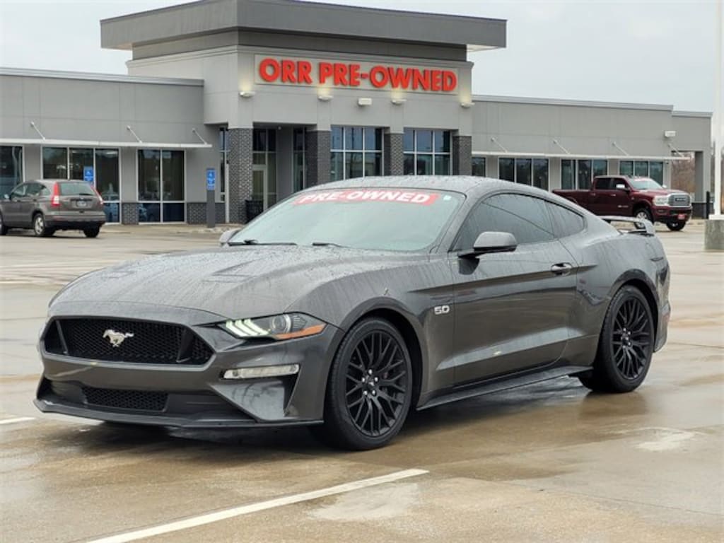 This 2018 Ford Mustang comes equipped with Enhanced Security Package (Active Anti-Theft System and Wheel Locking Kit), Equipment Group 401A (Leather Bucket Seats w/Color Accents), GT Performance Package (3.73 TORSEN Differential Ltd Slip Rear Axle Ratio, Engine Spun Aluminum Instrument Panel, Gauge Pack (Oil Pressure & Vacuum), HD Front Springs, Larger Brake Rotors, Larger Radiator, Unique Stability Control, and Wheels: 19 x 9 Fr & 19 x 9.5 Rr Ebony Black), Premium Plus Package (12 LCD Digital Instrument Cluster w/MyColor, Heated Steering Wheel, SYNC Connect, and Voice-Activated Touch-Screen Navigation System), Safe & Smart Package (Adaptive Cruise Control, Automatic High Beam, Blind Spot Info System w/Cross-Traffic Alert, Lane Keeping Alert, Memory Driver Seat, Mirrors & Ambient Lighting, Pre-Collision Assist w/Pedestrian Detection, and Rain-Sensing Windshield Wipers), 3.15 Limited Slip Rear Axle Ratio, 4-Wheel Disc Brakes, 9 Speakers, ABS brakes, Air Conditioning, Alloy wheels, AM/FM radio: SiriusXM, AM/FM Stereo w/Single CD Player, Apple CarPlay/Android Auto, Auto-dimming Rear-View mirror, Automatic temperature control, Block heater, Brake assist, Bumpers: body-color, CD player, Climate Controlled Heated/Cooled Front Seats, Compass, Delay-off headlights, Driver door bin, Driver vanity mirror, Dual front impact airbags, Dual front side impact airbags, Electronic Stability Control, Emergency communication system: 911 Assist, Exterior Parking Camera Rear, Four wheel independent suspension, Front anti-roll bar, Front Bucket Seats, Front Center Armrest, Front dual zone A/C, Front fog lights, Front reading lights, Fully automatic headlights, Garage door transmitter, Heated door mirrors, Heated front seats, Illuminated entry, Knee airbag, Leather Bucket Seats, Leather Shift Knob, Linked Graphite Aluminum Instrument Panel, Low tire pressure warning, Occupant sensing airbag, Outside temperature display, Overhead airbag, Overhead console, Panic alarm, Passenger door bin, Passenger vanity mirror, Power door mirrors, Power driver seat, Power passenger seat, Power steering, Power windows, Premium Floormats with Accent Stitch, Radio data system, Rear anti-roll bar, Rear window defroster, Remote keyless entry, Security system, SiriusXM Radio, Speed control, Speed-sensing steering, Speed-Sensitive Wipers, Split folding rear seat, Spoiler, Steering wheel mounted audio controls, SYNC 3 Communications & Entertainment System, Tachometer, Telescoping steering wheel, Tilt steering wheel, Traction control, Trip computer, Turn signal indicator mirrors, Variably intermittent wipers, Ventilated front seats, Voltmeter, and Wheels: 18 x 8 Machined-Face Aluminum. CARFAX One-Owner. 12 LCD Digital Instrument Cluster w/MyColor, 3.73 TORSEN Differential Ltd Slip Rear Axle Ratio, Active Anti-Theft System, Adaptive Cruise Control, Automatic High Beam, Blind Spot Info System w/Cross-Traffic Alert, Engine Spun Aluminum Instrument Panel, Enhanced Security Package, Equipment Group 401A, Gauge Pack (Oil Pressure & Vacuum), GT Performance Package, HD Front Springs, Heated Steering Wheel, Lane Keeping Alert, Larger Brake Rotors, Larger Radiator, Leather Bucket Seats w/Color Accents, Memory Driver Seat, Mirrors & Ambient Lighting, Pre-Collision Assist w/Pedestrian Detection, Premium Plus Package, Rain-Sensing Windshield Wipers, Safe & Smart Package, SYNC Connect, Unique Stability Control, Voice-Activated Touch-Screen Navigation System, Wheel Locking Kit, Wheels: 19 x 9 Fr & 19 x 9.5 Rr Ebony Black.