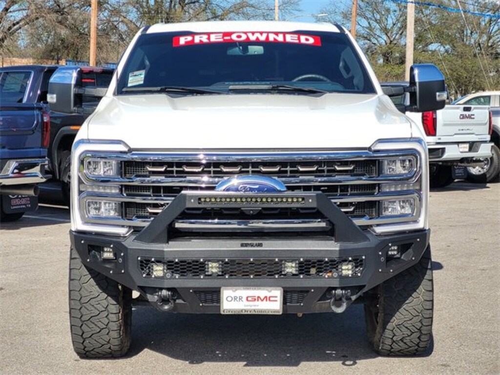 This 2024 Ford F-350SD comes equipped with Chrome Package (Chrome Door Handles, Chrome Exhaust Tip, Unique Chrome Mirror Caps, and Wheels: 20 Chrome PVD Aluminum), FX4 Off-Road Package (Hill Descent Control, Off-Road Specifically Tuned Shock Absorbers, and Unique FX4 Off-Road Box Decal), 4WD, Navigation system: Connected Navigation (includes complimentary 1-year trial), 4-Wheel Disc Brakes, ABS brakes, Adjustable pedals, Air Conditioning, Alloy wheels, AM/FM radio: SiriusXM with 360L, Auto High-beam Headlights, Auto tilt-away steering wheel, Auto-dimming Rear-View mirror, Automatic temperature control, Brake assist, Compass, Delay-off headlights, Driver door bin, Driver vanity mirror, Dual front impact airbags, Dual front side impact airbags, Electronic Stability Control, Emergency communication system: SYNC 4 911 Assist, Engine Block Heater, Exterior Parking Camera Rear, Flow-Through Console, Front anti-roll bar, Front Bucket Seats, Front Center Armrest, Front dual zone A/C, Front fog lights, Front reading lights, Fully automatic headlights, Garage door transmitter, Heated door mirrors, Heated front seats, Heated rear seats, Heated steering wheel, Illuminated entry, Leather steering wheel, Low tire pressure warning, Memory seat, Outside temperature display, Overhead airbag, Overhead console, Panic alarm, Passenger door bin, Passenger vanity mirror, Pedal memory, Power door mirrors, Power driver seat, Power passenger seat, Power steering, Power windows, Radio: B&O Unleashed Sound System by Bang & Olufsen, Rain sensing wipers, Rapid-Heat Supplemental Cab Heater, Rear reading lights, Rear seat center armrest, Rear step bumper, Rear window defroster, Remote keyless entry, Security system, SiriusXM Radio w/360L, Speed control, Split folding rear seat, Steering wheel memory, Steering wheel mounted audio controls, SYNC 4 w/Enhanced Voice Recognition, Tachometer, Telescoping steering wheel, Tilt steering wheel, Traction control, Trip computer, Turn signal indicator mirrors, Twin Panel Power Moonroof, Variably intermittent wipers, and Ventilated front seats. CARFAX One-Owner. Clean CARFAX. One Owner Carfax, 4WD, Chrome Door Handles, Chrome Exhaust Tip, Chrome Package, FX4 Off-Road Package, Hill Descent Control, Navigation system: Connected Navigation (includes complimentary 1-year trial), Off-Road Specifically Tuned Shock Absorbers, Unique Chrome Mirror Caps, Unique FX4 Off-Road Box Decal, Wheels: 20 Chrome PVD Aluminum.