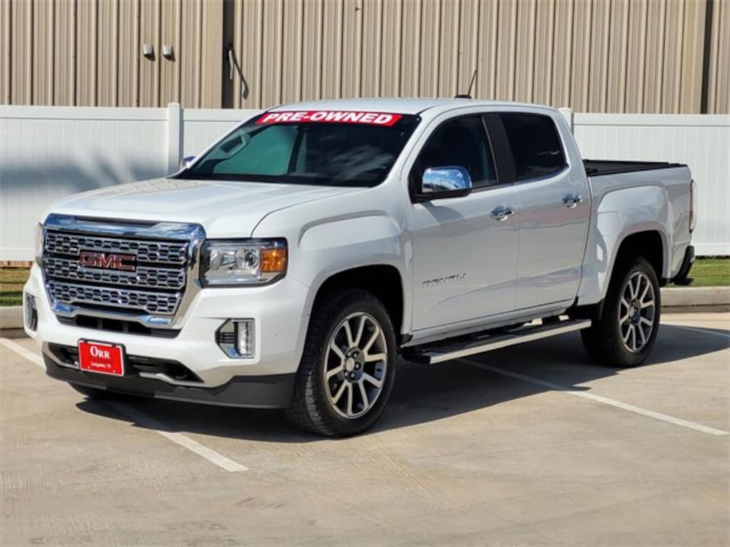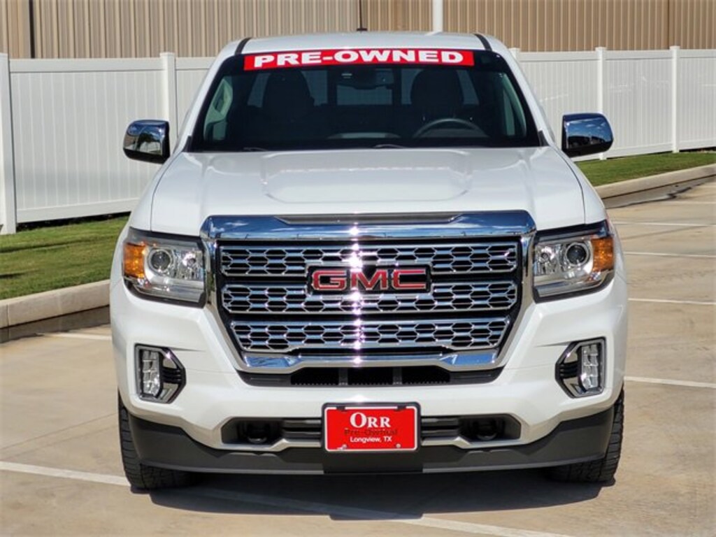 This 2021 GMC Canyon comes equipped with Driver Alert Package (Forward Collision Alert and Lane Departure Warning System), Preferred Equipment Group 4SD (5 Rectangular Chrome Assist Steps, Black Spray-On Bedliner w/GMC Logo, Heated Steering Wheel, Hitch Guidance, Polished Exhaust Tip, Tow/Haul Mode, Ultrasonic Rear Parking Assist, Ventilated Driver Seat, and Ventilated Front Passenger Seat), Trailering Package, 4WD, Navigation System, 2 USB Data Ports, 3.42 Rear Axle Ratio, 4-Way Power Front Passenger Seat Adjuster, 4-Wheel Disc Brakes, 7 Speakers, ABS brakes, Air Conditioning, Alloy wheels, AM/FM radio: SiriusXM with 360L, Apple CarPlay/Android Auto, Auto-dimming Rear-View mirror, Automatic temperature control, Bose Premium 7-Speaker Audio System Feature, Bumpers: body-color, Compass, Delay-off headlights, Driver 6-Way Power Seat Adjuster, Driver door bin, Driver vanity mirror, Dual front impact airbags, Dual front side impact airbags, Electronic Stability Control, Exterior Parking Camera Rear, Front anti-roll bar, Front Bucket Seats, Front Center Armrest, Front fog lights, Front License Plate Kit, Front reading lights, Front wheel independent suspension, Fully automatic headlights, Genuine wood console insert, Genuine wood door panel insert, HD Radio, Heated door mirrors, Heated Driver & Front Passenger Seats, Heated front seats, Heated steering wheel, Illuminated entry, Low tire pressure warning, Occupant sensing airbag, Outside temperature display, Overhead airbag, Overhead console, Panic alarm, Passenger door bin, Passenger vanity mirror, Perforated Leather-Appointed Seat Trim, Power door mirrors, Power Driver Lumbar Control Seat Adjuster, Power driver seat, Power Passenger Lumbar Control Seat Adjuster, Power passenger seat, Power steering, Power windows, Premium audio system: GMC Infotainment System, Radio data system, Radio: AM/FM w/8 Diagonal Multi-Touch Display Nav, Rear reading lights, Rear seat center armrest, Rear step bumper, Rear window defroster, Remote keyless entry, Security system, SiriusXM Radio, Speed control, Speed-sensing steering, Steering wheel mounted audio controls, Tachometer, Telescoping steering wheel, Tilt steering wheel, Traction control, Trip computer, Variably intermittent wipers, Ventilated front seats, and Wheels: 20 x 8.5 Diamond Cut Machined Aluminum. CARFAX One-Owner. Clean CARFAX. One Owner Carfax, 4WD, 5 Rectangular Chrome Assist Steps, Black Spray-On Bedliner w/GMC Logo, Driver Alert Package, Forward Collision Alert, Heated Steering Wheel, Hitch Guidance, Lane Departure Warning System, Navigation System, Polished Exhaust Tip, Preferred Equipment Group 4SD, Tow/Haul Mode, Trailering Package, Ultrasonic Rear Parking Assist, Ventilated Driver Seat, Ventilated Front Passenger Seat.