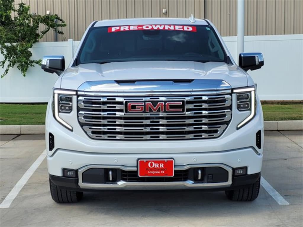 This 2023 GMC Sierra 1500 comes equipped with Preferred Equipment Group 5SA (120-Volt Instrument Panel Power Outlet, 170 Amp Alternator, 2 Charge/Data USB Ports Inside Center Console, 2 Type-C Charge-Only Rear USB Ports, 2 USB Ports, Auto-Locking Rear Differential, Auxiliary External Transmission Oil Cooler, Bed View Camera, Chrome Header w/Signature Denali Chrome Grille, Chrome Recovery Hooks, Chrome Wheel To Wheel Assist Steps, Color-Keyed Carpeting Floor Covering, Compass, Deep-Tinted Glass, Electric Rear-Window Defogger, Electrical Steering Column Lock, Floor-Mounted Center Console, Front Rainsensing Wipers, GMC Connected Access Capable, HD Surround Vision, Heated 2nd Row Outboard Seats, Heated Driver & Front Outboard Passenger Seating, Heavy-Duty Air Filter, Hill Descent Control, Hitch Guidance w/Hitch View, In-Vehicle Trailering App, Integrated Trailer Brake Controller, Keyless Open & Start, LED Cargo Area Lighting, OnStar & GMC Connected Services Capable, Perimeter Lighting, Power Door Locks, Power Front Passenger Windows w/Express Up/Down, Power Front Windows w/Driver Express Up/Down, Power Rake & Telescoping Steering Column, Power Rear Windows w/Express Down, Power Sliding Rear Window w/Rear Defogger, Premium Bose 7-Speaker Sound System, Push Button Start, Rear Cross Traffic Braking, Rear Pedestrian Detection, Rear Wheelhouse Liners, Remote Vehicle Starter System, SiriusXM w/360L, Spray-On Pickup Bed Liner w/Denali Logo, Steering Wheel Audio Controls, Theft Deterrent System (Unauthorized Entry), Trailer Camera Provisions, Trailer Side Blind Zone Alert, Ultrasonic Front & Rear Park Assist, Universal Home Remote, Ventilated Driver & Front Passenger Seats, Wi-Fi Hotspot Capable, Wireless Charging, Wireless Phone Projection, and 120-Volt Bed Mounted Power Outlet), Technology Package (Adaptive Cruise Control, Multicolor 15 Diagonal Head-Up Display, and Rear Camera Mirror), Trailering Package (Hitch Guidance), 10-Speed Automatic, 4WD, Jet Black Leather, Navigation System, 10-Way Power Driver Seat Adjuster w/Lumbar, 10-Way Power Passenger Seat Adjuster w/Lumbar, 220 Amp Alternator, 3.23 Rear Axle Ratio, 4-Wheel Disc Brakes, 7 Speakers, ABS brakes, Adaptive suspension, Air Conditioning, Alloy wheels, AM/FM radio, Apple CarPlay/Android Auto, Auto High-beam Headlights, Auto-dimming door mirrors, Auto-dimming Rear-View mirror, Automatic Emergency Braking, Automatic temperature control, Body Color Wheel Arch Moldings (LPO), Brake assist, Buckle to Drive, Bumpers: body-color, Delay-off headlights, Denali Premium Suspension w/Adaptive Ride Control, Driver door bin, Driver Memory, Driver vanity mirror, Dual front impact airbags, Dual front side impact airbags, Electronic Stability Control, Emergency communication system: OnStar and GMC connected services capable, Engine Block Heater, Following Distance Indicator, Forge Perforated Leather Seat Trim, Forward Collision Alert, Front anti-roll bar, Front Bucket Seats, Front Center Armrest, Front dual zone A/C, Front fog lights, Front License Plate Kit, Front Pedestrian Braking, Front reading lights, Front wheel independent suspension, Fully automatic headlights, Garage door transmitter, Genuine wood console insert, Genuine wood dashboard insert, Genuine wood door panel insert, GMC MultiPro Tailgate Step Lights (LPO), Heated door mirrors, Heated front seats, Heated rear seats, Heated steering wheel, Illuminated entry, IntelliBeam Automatic High Beam On/Off, Lane Keep Assist w/Lane Departure Warning, Low tire pressure warning, Memory seat, Not Equipped w/Steering Column Lock, Occupant sensing airbag, Outside temperature display, Overhead airbag, Overhead console, Panic alarm, Passenger door bin, Passenger vanity mirror, Power door mirrors, Power driver seat, Power passenger seat, Power steering, Power windows, Premium audio system: GMC Infotainment System, Radio data system, Radio: Premium GMC Infotainment Audio System, Rain sensing wipers,