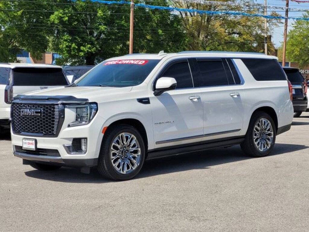 This 2023 GMC Yukon XL comes equipped with Advanced Security Package (Glass Breakage Sensor, Theft-Deterrent Alarm System, Vehicle Inclination Sensor, and Vehicle Interior Movement Sensor), Advanced Technology Package (Enhanced Automatic Parking Assist, Inside Rearview Auto-Dimming Rear Camera Mirror, Rear Camera Mirror Washer, and Reverse Automatic Braking), Max Trailering Package (Extra Capacity Cooling System), Preferred Equipment Group 5SB (15 Diagonal Multi-Color Head-Up Display, 16-Way Power Seat Adjusters, 2 Presets For Outside Rearview Mirrors, 3 Years of GMC Connected Services, 3 Years of OnStar Safety & Security, 3rd Row 60/40 Power-Folding Split-Bench Seat, Adaptive Cruise Control, Bose Performance Series Sound System w/18 Speakers, Bright Front & Rear Door Sill Plates, Chrome Door Handles w/Body-Color Strip, Dual Exhaust System, Dual-Pane Panoramic Power Sunroof, Enhanced Automatic Emergency Braking, Floor Console, Hands-Free Power Programmable Rear Liftgate, HD Surround Vision, Heated & Ventilated Driver & Front Passenger Seats, Heated 2nd Row Outboard Position Seats, Heated Driver & Front Passenger Seats, Heated Steering Wheel, Hill Descent Control, Leather-Wrapped Steering Wheel, Outside Heated Power-Adjustable Mirrors, Power Release 2nd Row Bucket Seats, Power Tilt & Telescopic Steering Column, Power-Retractable Assist Steps, Rear Cross Traffic Alert, Rear Pedestrian Alert, Rear Seat Media System, Safety Alert Seat, Sport Pedal Cover Kit (LPO), Universal Home Remote, Vader Bodyside Moldings, and Wireless Charging), Premium Capability Package w/Active Response 4WD (Air Ride Adaptive Suspension and Electronic Limited Slip Differential (eLSD)), 4WD, Navigation System, 1.5 kW Heater/Defrost Air System, 18 Speakers, 250 Amps Alternator, 3 Years of OnStar Safety & Security (DISC), 3.23 Rear Axle Ratio, 3rd row seats: split-bench, 4-Wheel Disc Brakes, 850 Cold-Cranking Amps Battery, ABS brakes, Adaptive suspension, Air Conditioning, Alloy wheels, AM/FM radio: SiriusXM with 360L, AM/FM Stereo, Apple CarPlay/Android Auto, Auto High-beam Headlights, Auto-dimming door mirrors, Auto-dimming Rear-View mirror, Auto-leveling suspension, Automatic temperature control, Bodyside moldings, Brake assist, Bumpers: body-color, Compass, Delay-off headlights, Diesel B20 Fuel, Driver door bin, Driver vanity mirror, Dual front impact airbags, Dual front side impact airbags, Electronic Stability Control, Emergency communication system: OnStar and GMC connected services capable, Engine Block Heater, Four wheel independent suspension, Front anti-roll bar, Front Bucket Seats, Front Center Armrest, Front dual zone A/C, Front fog lights, Front reading lights, Full Grain Leather Seats, Fully automatic headlights, Garage door transmitter, Headphones, Heads-Up Display, Heated door mirrors, Heated front seats, Heated rear seats, Heated steering wheel, Hitch Guidance w/Hitch View, Illuminated entry, Illuminated Liftgate Sill Plate (LPO), Integrated Trailer Brake Controller, Lane Departure Warning System, Leather steering wheel, Low tire pressure warning, Magnetic Ride Control Suspension, Memory seat, Not Equipped w/Wireless Charging, Occupant sensing airbag, Outside temperature display, Overhead airbag, Overhead console, Panic alarm, Passenger door bin, Passenger vanity mirror, Power door mirrors, Power driver seat, Power Liftgate, Power moonroof, Power passenger seat, Power steering, Power windows, Rain sensing wipers, Rear air conditioning, Rear anti-roll bar, Rear audio controls, Rear reading lights, Rear window defroster, Rear window wiper, Remote keyless entry, Roof rack: rails only, Security system, Single Outlet Exhaust System, SiriusXM w/360L, Smart Trailer Integration Indicator, Speed control, Speed-sensing steering, Split folding rear seat, Spoiler, Steering wheel memory, Steering wheel mounted audio controls, Super Cruise, Tachometer, Telescoping steering wheel, Tilt steering wheel, Trac