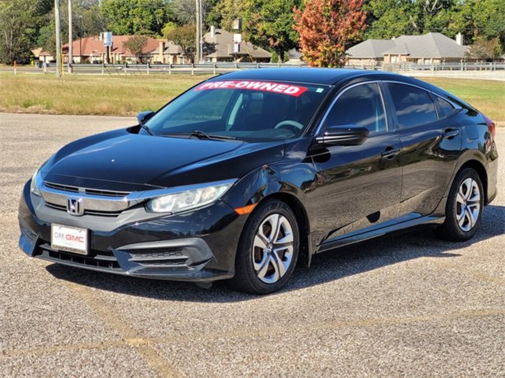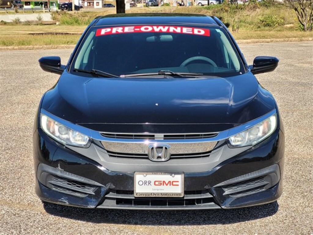 This 2016 Honda Civic comes equipped with Black w/Cloth Seat Trim, 16 Wheels w/Full Covers, 4 Speakers, 4-Wheel Disc Brakes, ABS brakes, Air Conditioning, AM/FM radio, Automatic temperature control, Brake assist, Bumpers: body-color, Cloth Seat Trim, Compass, Delay-off headlights, Driver door bin, Driver vanity mirror, Dual front impact airbags, Dual front side impact airbags, Electronic Stability Control, Exterior Parking Camera Rear, Four wheel independent suspension, Front anti-roll bar, Front Bucket Seats, Front Center Armrest, Front reading lights, Fully automatic headlights, Illuminated entry, Low tire pressure warning, Occupant sensing airbag, Outside temperature display, Overhead airbag, Panic alarm, Passenger door bin, Passenger vanity mirror, Power door mirrors, Power steering, Power windows, Radio data system, Radio: 160-Watt AM/FM Audio System, Rear anti-roll bar, Rear window defroster, Reclining Front Bucket Seats, Remote keyless entry, Security system, Speed control, Speed-sensing steering, Steering wheel mounted audio controls, Tachometer, Telescoping steering wheel, Tilt steering wheel, and Traction control. 31/41 City/Highway MPG Black w/Cloth Seat Trim.