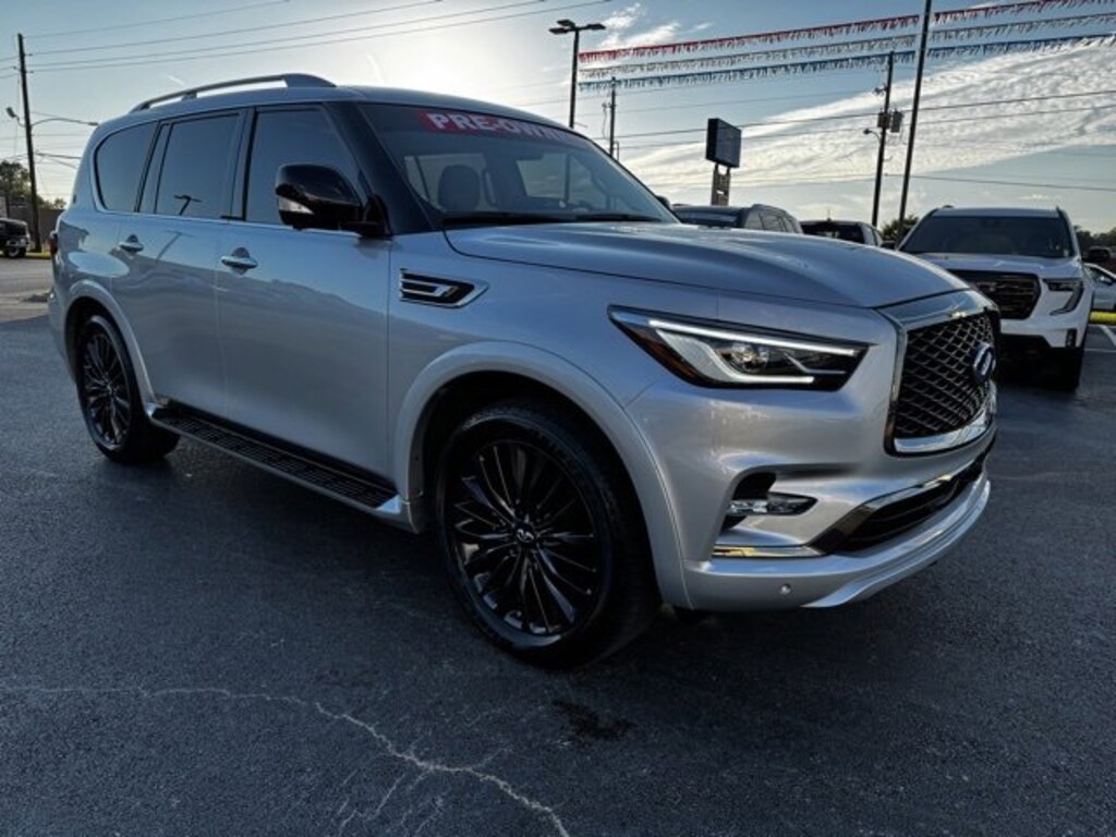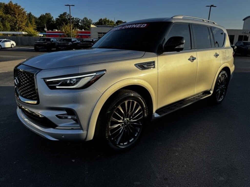 This 2023 INFINITI QX80 comes equipped with Cargo Package (Cargo Net, Carpeted Cargo Mat, Center Console Tray, Console Net, and First-Aid Kit), Navigation system: INFINITI InTouch Navigation, 13 Speakers, 2.937 Axle Ratio, 3rd row seats: split-bench, 4-Wheel Disc Brakes, ABS brakes, Air Conditioning, Alloy wheels, AM/FM radio: SiriusXM, Anti-whiplash front head restraints, Auto High-beam Headlights, Auto tilt-away steering wheel, Auto-dimming door mirrors, Auto-dimming Rear-View mirror, Auto-leveling suspension, Automatic temperature control, Brake assist, Bumpers: body-color, Compass, Delay-off headlights, Driver door bin, Driver vanity mirror, Dual front impact airbags, Dual front side impact airbags, Electronic Stability Control, Emergency communication system: INFINITI InTouch, Four wheel independent suspension, Front anti-roll bar, Front Bucket Seats, Front Center Armrest, Front dual zone A/C, Front fog lights, Front reading lights, Fully automatic headlights, Garage door transmitter: HomeLink, Heated door mirrors, Heated Front Bucket Seats, Heated front seats, Heated steering wheel, Illuminated entry, INFINITI Radiant Illuminated Kick Plates, Leather Shift Knob, Leather steering wheel, Leather-Appointed Seats, Literature Kit, Low tire pressure warning, Memory seat, Occupant sensing airbag, Outside temperature display, Overhead airbag, Overhead console, Panic alarm, Passenger door bin, Passenger vanity mirror, Power door mirrors, Power driver seat, Power Liftgate, Power moonroof, Power passenger seat, Power steering, Power windows, Premium audio system: Bose, Premium Select Sahara Stone Interior, Radio data system, Radio: Bose Premium Audio System w/13 Speakers, Rain sensing wipers, Rear air conditioning, Rear anti-roll bar, Rear reading lights, Rear seat center armrest, Rear window defroster, Rear window wiper, Reclining 3rd row seat, Remote keyless entry, Security system, Speed control, Speed-sensing steering, Split folding rear seat, Spoiler, Steering wheel memory, Steering wheel mounted audio controls, Tachometer, Telescoping steering wheel, Tilt steering wheel, Traction control, Trip computer, Turn signal indicator mirrors, Variably intermittent wipers, Voltmeter, and Wheels: 22 x 8.0 Dark Chrome Cast Aluminum-Alloy. Clean CARFAX. Carfax no accidents, Cargo Net, Cargo Package, Carpeted Cargo Mat, Center Console Tray, Console Net, First-Aid Kit, Navigation system: INFINITI InTouch Navigation.Liquid Platinum 2023 INFINITI QX80 Premium Select 5.6L V8 4WD 7-Speed AutomaticPlease see our hundreds of 4.5 Star Reviews on Google and Facebook. We also feature some truly incredible models for you to check out. We have an impressive Pre-Owned inventory that is full of the latest and greatest models, as well as a great selection of New inventory. We will make your purchase smooth and easy and we can provide great financing options on all of our inventory.