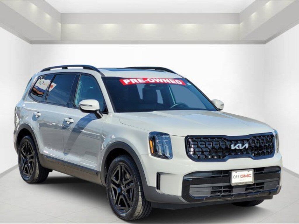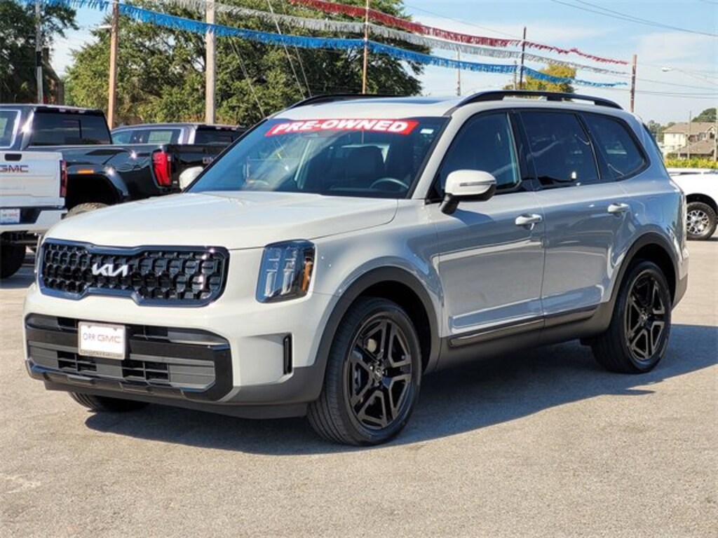 This 2024 Kia Telluride comes equipped with Navigation System, 3.648 Axle Ratio, 3rd row seats: split-bench, 4-Wheel Disc Brakes, 6 Speakers, ABS brakes, Air Conditioning, Alloy wheels, AM/FM radio: SiriusXM, Apple CarPlay & Android Auto, Auto High-beam Headlights, Auto-dimming Rear-View mirror, Auto-leveling suspension, Automatic temperature control, Brake assist, Bumpers: body-color, Cargo Cover, Cargo Tray Seat Back, Carpet Floor Mats, Compass, Cross Bars X-Line, Delay-off headlights, Driver door bin, Driver vanity mirror, Dual front impact airbags, Dual front side impact airbags, Electronic Stability Control, Emergency communication system: 911 Connect, Exterior Parking Camera Rear, Four wheel independent suspension, Front anti-roll bar, Front Bucket Seats, Front Center Armrest, Front dual zone A/C, Front reading lights, Fully automatic headlights, Heated & Ventilated Front Bucket Seats, Heated door mirrors, Heated front seats, Heated steering wheel, Hybrid Cargo Net, Illuminated entry, Knee airbag, Leather Seat Trim, Leather Shift Knob, Leather steering wheel, Low tire pressure warning, Occupant sensing airbag, Outside temperature display, Overhead airbag, Overhead console, Panic alarm, Passenger door bin, Passenger vanity mirror, Power door mirrors, Power driver seat, Power Liftgate, Power moonroof, Power passenger seat, Power steering, Power windows, Radio data system, Radio: AM/FM Display Audio System, Rear air conditioning, Rear anti-roll bar, Rear audio controls, Rear reading lights, Rear side impact airbag, Rear window defroster, Rear window wiper, Reclining 3rd row seat, Remote keyless entry, Roof rack: rails only, Security system, Smart Key w/ Push Button and Remote Start, Speed control, Speed-sensing steering, Split folding rear seat, Spoiler, Steering wheel mounted audio controls, Tachometer, Telescoping steering wheel, Tilt steering wheel, Traction control, Trip computer, Turn signal indicator mirrors, Variably intermittent wipers, Ventilated front seats, and Wheels: 20 x 7.5 Black Finish X-LINE Exclusive. CARFAX One-Owner. Clean CARFAX. One Owner Carfax, Navigation System.