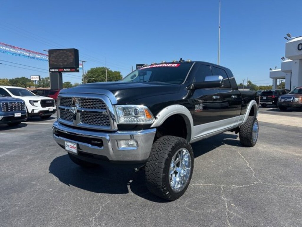 This 2015 Ram 2500 comes equipped with Cold Weather Group (Engine Block Heater and Winter Front Grille Cover), Convenience Group (Auto High Beam Headlamp Control and Rain Sensitive Windshield Wipers), Protection Group, Quick Order Package 2FH Laramie, SiriusXM Traffic, 1 Year Trial (Registration Required), 10 Speakers, 115V Auxiliary Power Outlet, 180 Amp Alternator, 20 x 8.0 Polished Aluminum Wheels, 4-Wheel Disc Brakes, 5-Year SiriusXM Traffic Service, 5-Year SiriusXM Travel Link Service, 8.4 Touchscreen Display, ABS brakes, Air Conditioning, Alloy wheels, AM/FM radio: SiriusXM, Anti-Spin Differential Rear Axle, Audio memory, Auto-dimming door mirrors, Auto-dimming Rear-View mirror, Automatic temperature control, Brake assist, Bumpers: chrome, Center Hub, Chrome Exterior Mirrors, Compass, Delay-off headlights, Driver door bin, Driver vanity mirror, Dual front impact airbags, Dual front side impact airbags, Electronic Stability Control, Electronically Controlled Throttle, Emergency communication system, Exterior Mirrors Courtesy Lamps, Exterior Mirrors w/Heating Element, Exterior Mirrors w/Memory, Exterior Mirrors w/Supplemental Signals, Front anti-roll bar, Front Bumper Sight Shields, Front Center Armrest w/Storage, Front dual zone A/C, Front fog lights, Front reading lights, Fully automatic headlights, Garage door transmitter, GPS Antenna Input, GPS Navigation, Harman Radio Manufacturer, HD Radio, Heated door mirrors, Heated Front Seats, Heated front seats, Heated steering wheel, Hemi Badge, High Back Seats, Illuminated entry, Integrated Voice Command w/Bluetooth, Keyless Enter-N-Go, Leather steering wheel, Leather Trim 40/20/40 Bench Seat, Low tire pressure warning, Media Hub (SD, USB, AUX), Memory seat, Next Generation Engine Controller, Occupant sensing airbag, Outside temperature display, Overhead airbag, Overhead console, Panic alarm, ParkView Rear Back-Up Camera, Passenger door bin, Passenger vanity mirror, Power 10-Way Memory Driver & 6-Way Passenger Seats, Power Adjustable Pedals w/Memory, Power door mirrors, Power driver seat, Power Folding Chrome Trailer Tow Mirrors, Power Folding Mirrors, Power Lumbar Adjust, Power passenger seat, Power steering, Power Sunroof, Power windows, Radio data system, Radio: Uconnect 8.4A AM/FM/SXM/BT, Radio: Uconnect 8.4AN AM/FM/SXM/HD/BT/NAV, Rear 60/40 Split Folding Seat, Rear seat center armrest, Rear step bumper, Rear Window Defroster, Remote keyless entry, Remote Proximity Keyless Entry, Remote Start System, Security system, Single Disc Remote CD Player, SiriusXM Satellite Radio, SiriusXM Travel Link, Speed control, Split folding rear seat, Steering wheel mounted audio controls, Tachometer, Tilt steering wheel, Tip Start, Traction control, Trailer Tow Mirrors, Transmission Oil Cooler, Trip computer, Turn signal indicator mirrors, Uconnect Access, Variably intermittent wipers, Ventilated front seats, Voltmeter, Wheel to Wheel Side Steps, and Wheels: 18 x 8.0 Polished Aluminum. Auto High Beam Headlamp Control, Cold Weather Group, Convenience Group, Engine Block Heater, Protection Group, Quick Order Package 2FH Laramie, Rain Sensitive Windshield Wipers, SiriusXM Traffic, Winter Front Grille Cover.